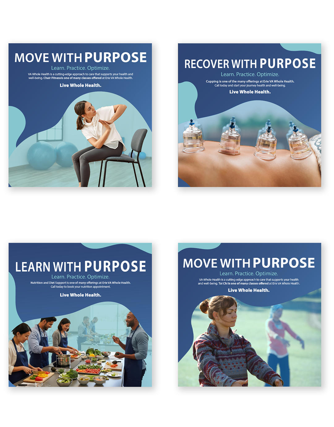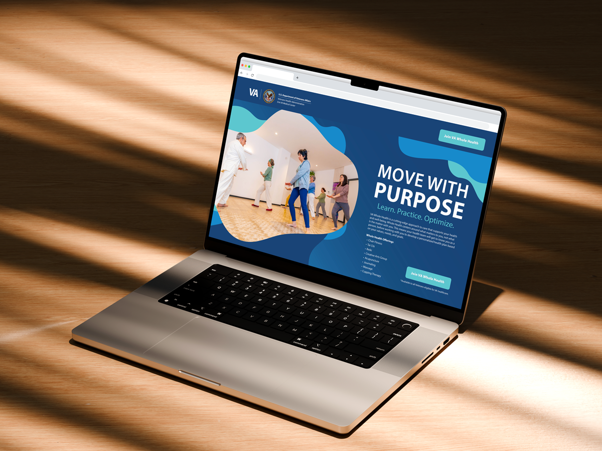 The Move With Purpose digital campaign was developed to modernize Erie VA Whole Health’s messaging and better reflect the department’s true approach to Veteran care. The goal was to replace outdated, confusing branding with a clear, actionable message that resonated with patients and aligned with facility priorities.